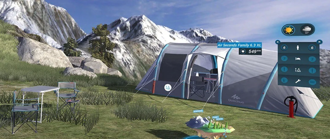 Thanks to introducing VR, customers can now view the Quechua tent range in selected backgrounds by adjusting the VR brightness and weather conditions.