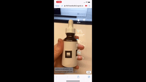 Pulling in the content from Contentstack via the GraphQL API and making it render correctly in the AR experience was another piece of the puzzle, made tricky because AR frameworks don't automatically make text "fit" like you might see on a webpage. Another part of the challenge was figuring out how to make the text that we were rendering stable, even if the marker moved around. Because of the nature of the experience—a small serum bottle held in your hand cannot be expected to stay perfectly stable!